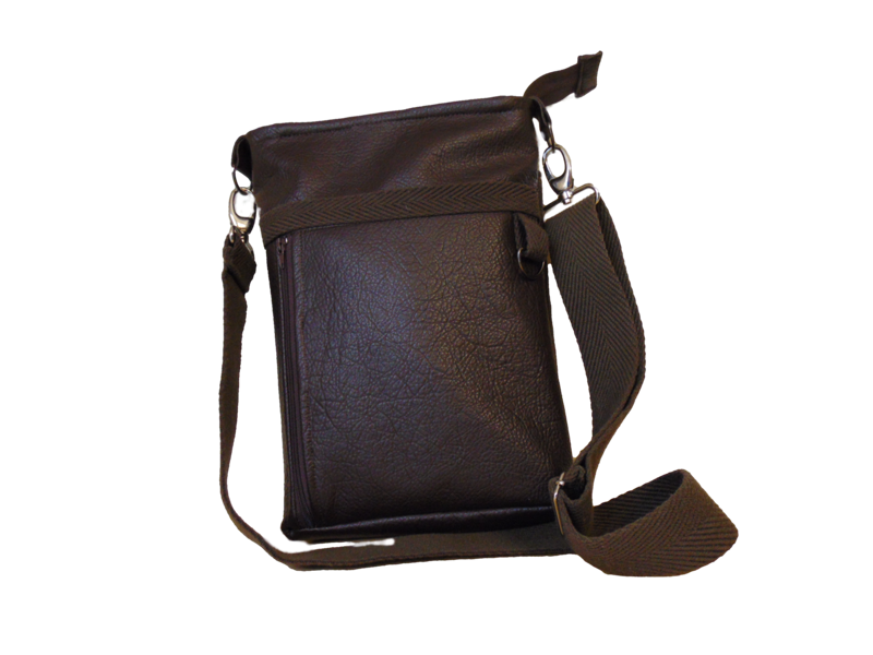 Borsello uomo in pelle testa di moro. Tracolla in tessuto regolabile e moschettoni. Tasche esterne. Foderata internamente in satin con comoda tasca interna.